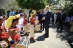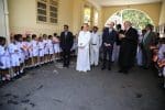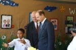 The visit commenced at the Junior School gate where the Earl and Countess were met by Principal Mr. Andrew Fowler-Watt. They were welcomed by the Junior School traditional drum troupe procession which led them in to the school, here they were greeted by the Cub Scouts’ Grand Howl.