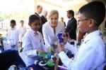 The Earl and Countess were shown around an arts and science exhibition in the lobby of the Oorloff Building. Afterwards, they opened the new ‘Trinity College London A Level Section’.