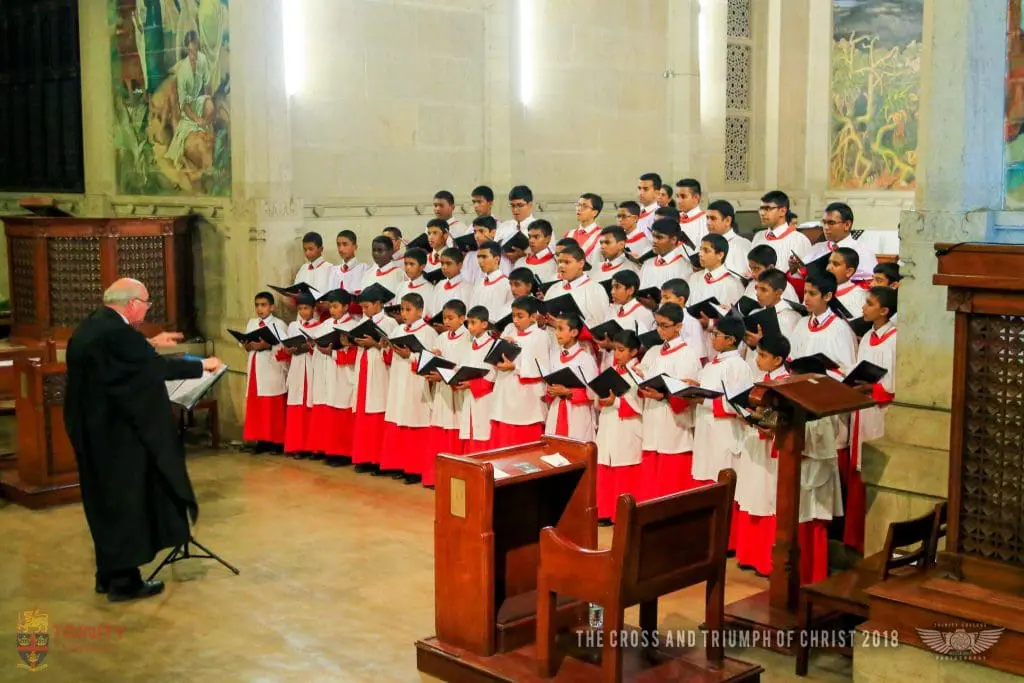 On the 25th of March, as the congregation waited expectantly, the choristers gathered at the west door of the Trinity College Chapel. The swell stops of the organ started to play, while the choir and procession proceeded to the chancel singing the processional hymn, Henry Milman’s “Ride on Ride on in Majesty”, beginning the eagerly awaited annual Cross and Triumph of Christ service.