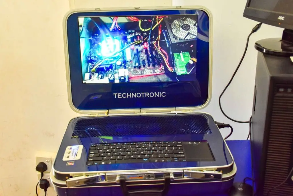 While working for the College Website Team I have met many students talented in various disciplines. But when I heard that an 11th grader had made a PC in a briefcase, I was taken by surprise. I wanted to meet him and see his creation for myself. While waiting in the second floor of the CLC with a junior author, a smart and confident looking fellow walked up the stairs with heavy briefcase in his hands.