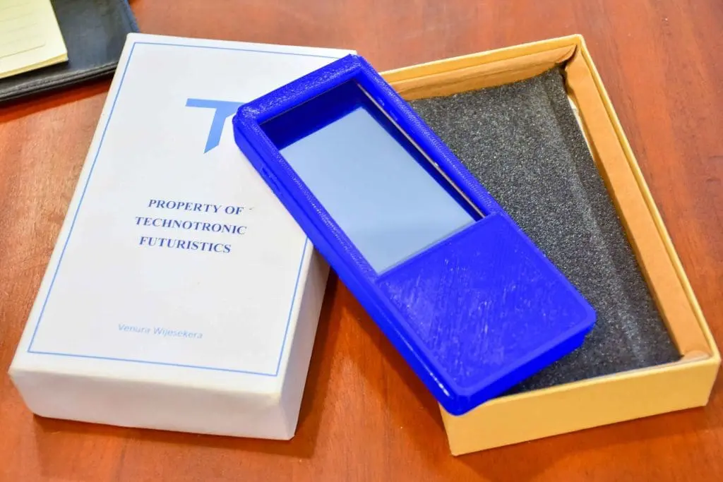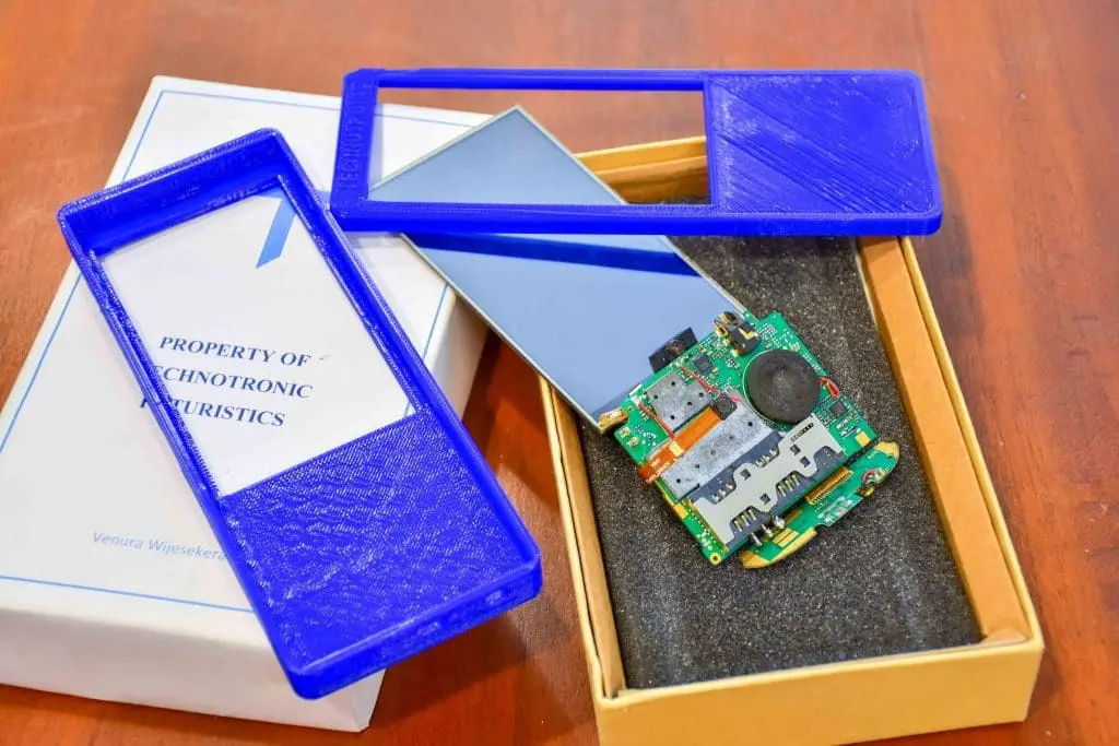 The exterior body of the phone was first designed by him using AutoDesk – a software used for architecture, 3D engineering, construction, manufacturing, media and entertainment industries. The phone body was created using a 3D printer made available at the American Corner, Kandy.