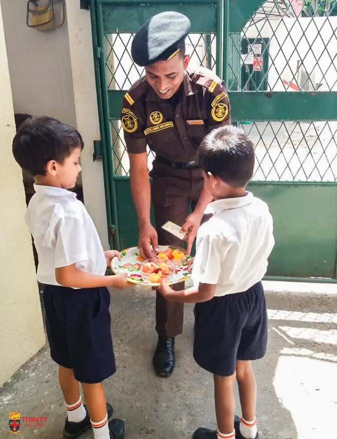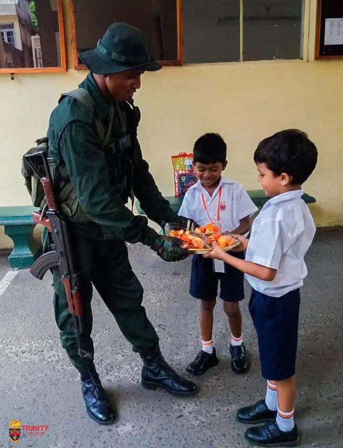 As shown in the pictures, the little chefs from the Kindergarten too the opportunity to share their food with an Army officer and the two security guards near the Junior School entrance gate.