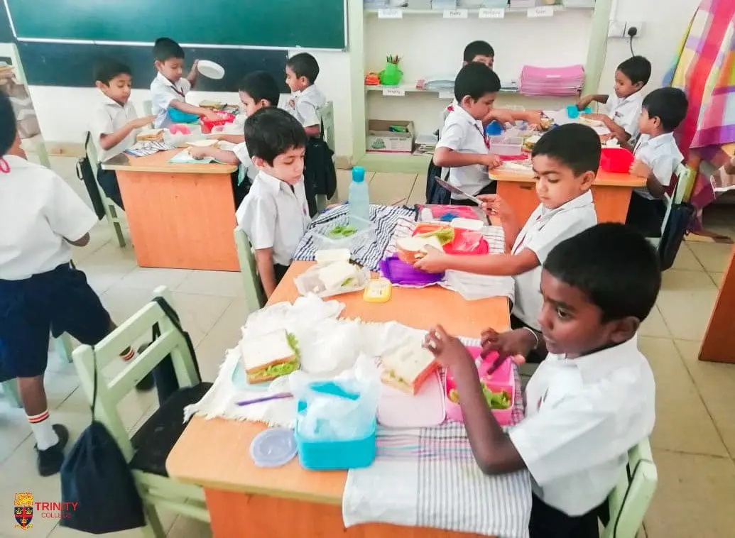 On 5th and 6th July, we had Grade 1E making a ‘balanced meal’ in their own classroom with traditional Sri Lankan food: