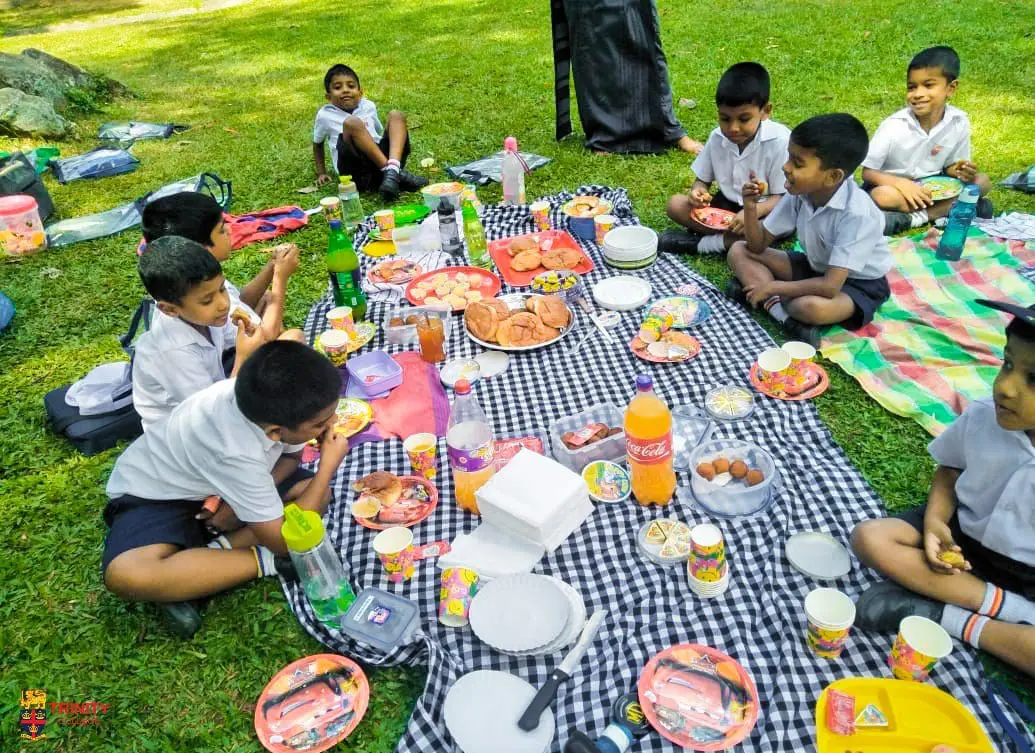 Grade 1A, 1B, 1C and 1D classes were taken on a picnic to the Chapel lawn, and 1E organized a special food meal in their classroom.
