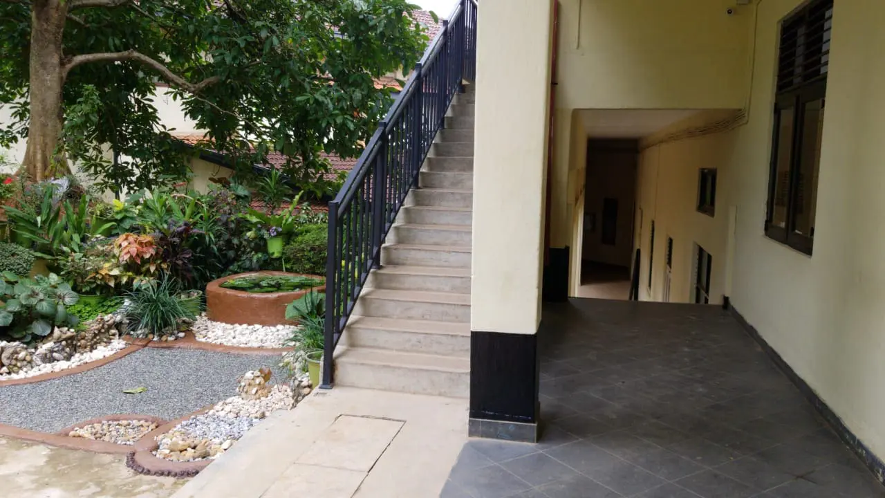 The garden is located near the place where Gaster and the Fraser blocks join. Recently a new staircase was built making an opening to the Fraser block at this point.