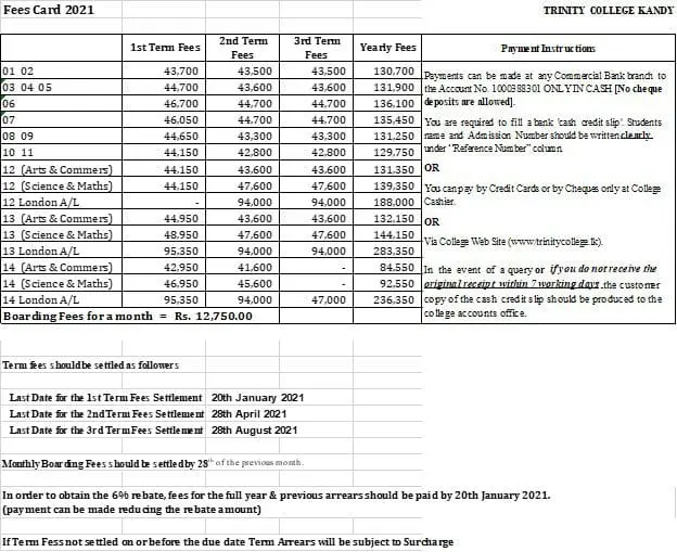 The challenges parents encounter due to our collective predicament are manifold. Hence, there will be no revision of College Fees for 2021. Kindly note the following fee structure and the payment schedule. Let me politely remind the parents that being a fee levying Private School, all curricular, co-curricular and administrative functions of TCK depend solely on the timely payment of school fees.