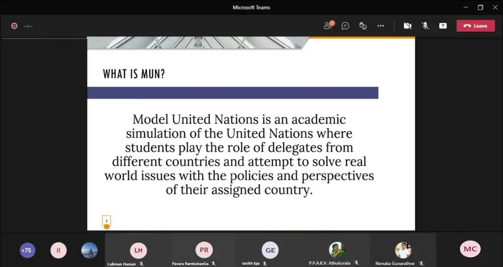 This year’s Hill Country Model United Nations Conference was held online via Microsoft Teams on 28 and 29 August 2021. The conference was organised for the 4th time by the Model United Nations (MUN) clubs of Trinity College Kandy, Dharmaraja College Kandy, and Gateway College Kandy.