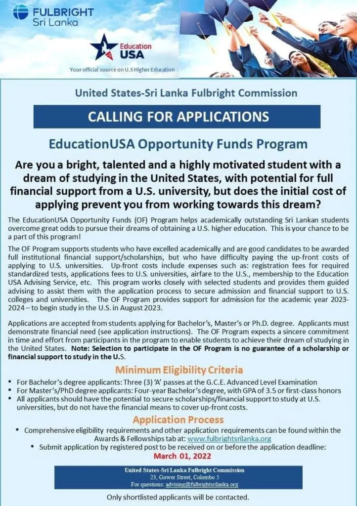 Education USA Opportunity Funds Program is a unique opportunity for academically outstanding Trinitians to pursue higher education, conduct research, obtain training, and engage in professional development in the United States of America.