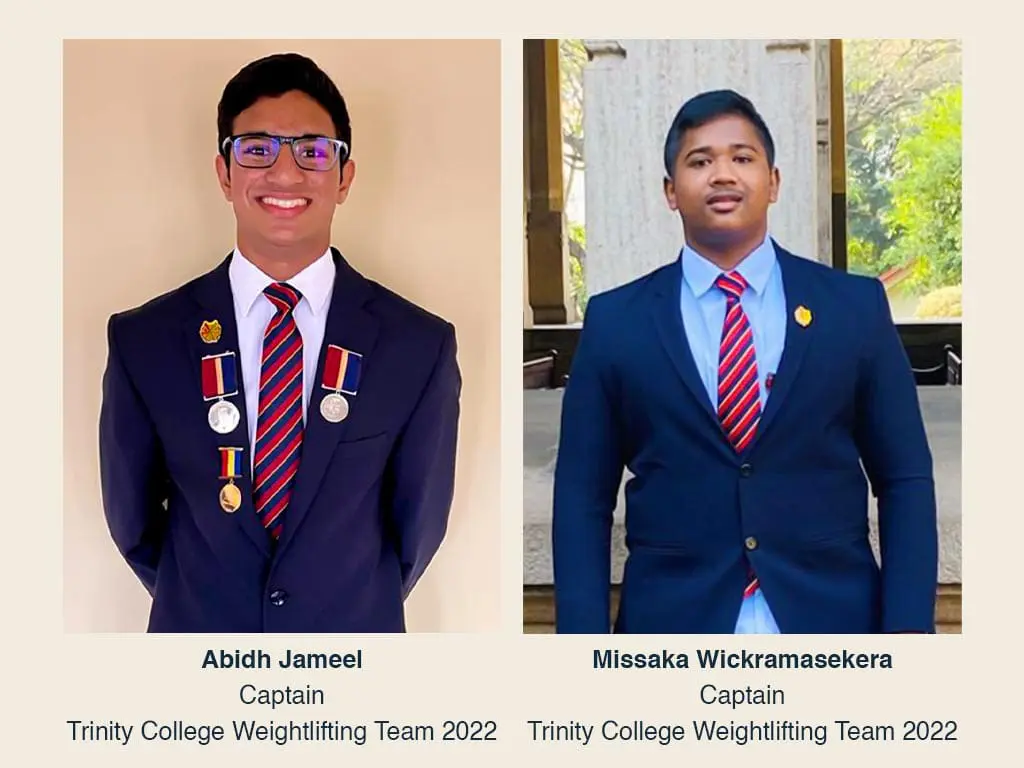 We are delighted to announce the appointment of Mast. Abidh Jameel as the Captain of the Trinity College Weightlifting Team for 2022. Mast. Missaka Wickramasekara will be the Vice Captain of the Team.