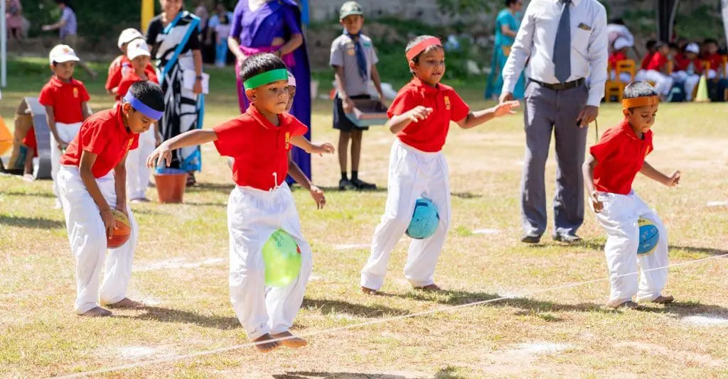 The event started with a word of introduction to the much-loved Chief Guest, and her many merits were masterfully elucidated. With smooth transition, they next moved on to a holy word of prayer by Rev. Shelton Samadanam, our respected and highly valued Chaplain. Our Father Principal, Rev. Araliya Jayasundara, the Vice principal, Mr.Krishanthan Anthonydas and the Co-Vice Principal, Mr. Ananda Marasinghe, along with the Director of Sports Mr. Gihan Samarasekara and the Junior School Headmistress Mrs. C.P.K. De Tissera were all notable members of the school administration who took part as key witnesses to commemorate the occasion. We then saw the Kindergarten Percussion band, lead by Master Oshan Samarasinghe, who enthralled the audience with their hand-beaten music and drummed beats. Serenading alongside to the School Song and National Anthem, the respective flags were hoisted by the Headmistress and Rev. Father Principal. They then respectfully took their seats as seven eager young fellows, in an artistic mirroring to the Pleiades of Atlas, marched forward to deliver an oath of promise. A pledge that owed to honest sportsmanship and cheerful athletic mastery followed. After the conclusion of this mystic yet awe-inducing promise, the Percussion band moved on to further engage the onlookers with their hard-practiced tones of genial and generic music. An Announcer from the cusp of the podium proceeded to smartly welcome the Kindergarten Drill Display, to which much applause was brought upon. What ensued was a classic yet choreographically pleasing performance by the students, who, with their suits of red and white, mimicked the perfect demigods of childhood and sportiness. In the words of the beloved J.K Rowling, first impressions can work wonders, so this primary set of classy acts brought upon a kick of enrichment and grandiose to the events that would be followed in the rest of the day; in a nutshell, they grounded the prospective of the sports meet as a well-organized and slickly coordinated one.