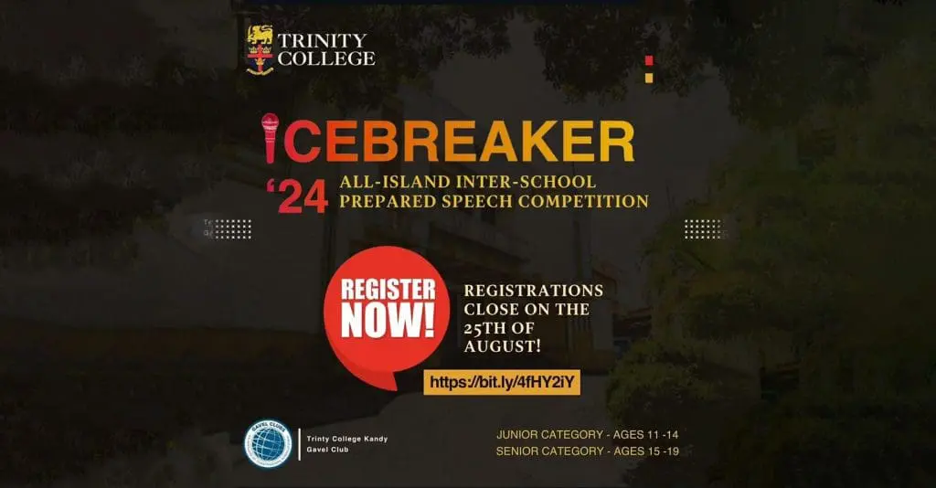 The Gavel Club of Trinity College returns with the second edition of the All-island Inter-school prepared speech competition, ICEBREAKER ‘24, following its first rendition in 2022. This competition provides a platform for talented gaveliers island-wide to perform and showcase their public speaking talents, whilst promoting friendly competition.