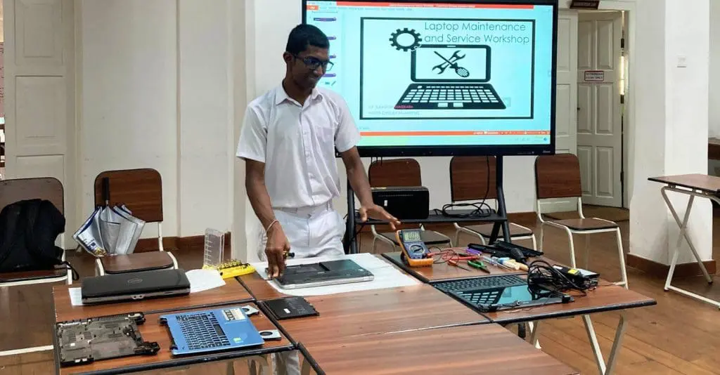 Master Cheruka Rajanayake, the President of the Automotive Society conducted the practical demonstration of dismantling a laptop and servicing it, while imparting valuable practical knowledge on the process, while Mr. Subash Dhanasekara, MIC of the Automotive Society added the necessary theoretical components.