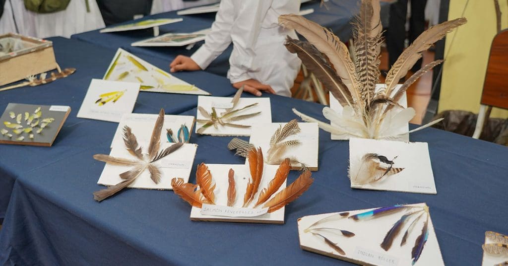 Moreover, the stall buzzed with excitement as attendees admired hand-painted illustrations of birds, done by yet another member of the society. A collection of books on various topics related to birds was displayed during the exhibition. Furthermore, members had an incubator with eggs for everyone to observe.