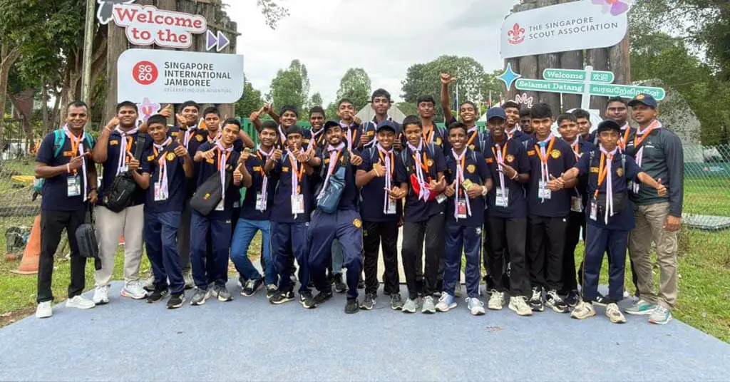 Five scouts from the 17th Kandy Trinity College Scout Troop, Master Kalana Ekanayake, Master Yenuka Illangakoon, Master Mohamed Shanaf, Master Yathursan Shashikumar, and Master Rohit Ruckshanan, represented Sri Lanka at the SG60 Singapore International Jamboree.