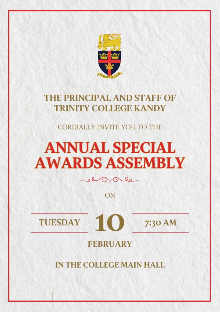 - The Special Awards Assembly will be held on 10 February at 7.30 a.m. in the College Main Hall.