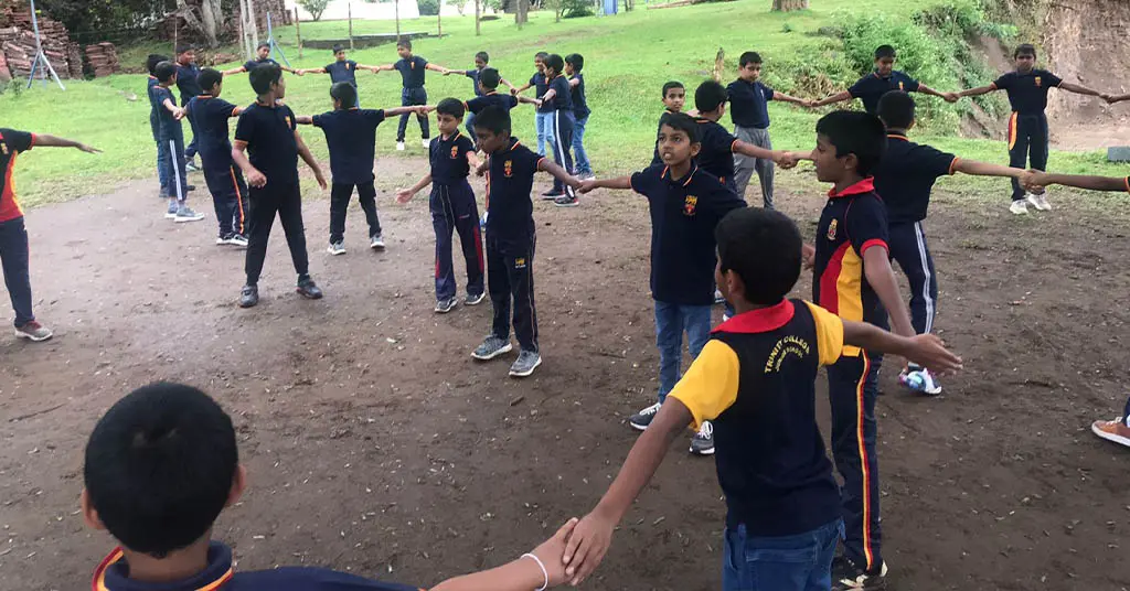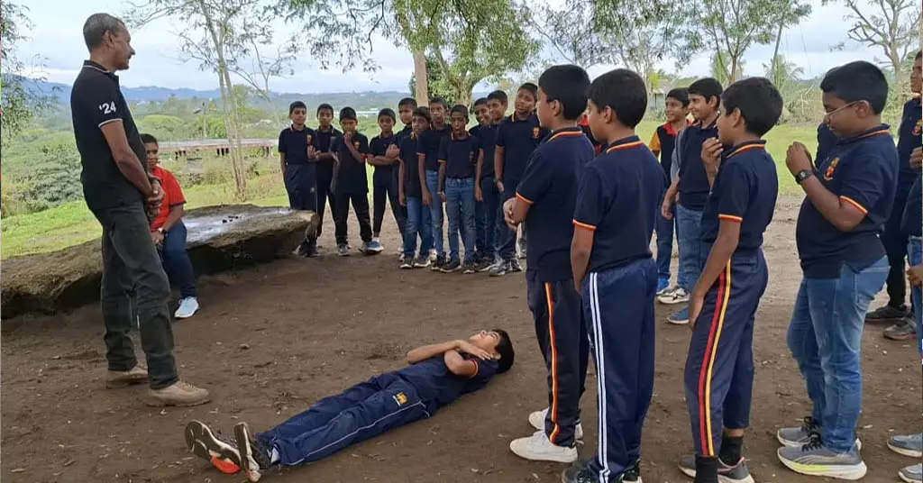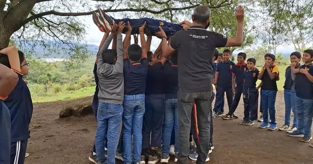 Many memorable moments unfolded under the iconic Tamarind tree, a silent witness to the laughter, excitement, and spirited shouts of students enjoying a learning space beyond the classroom. One of the highlights was a rope‑passing challenge, where students—divided into four circles of ten—were required to pass a rope using only their head and feet. It was inspiring to watch these young minds discuss strategies, collaborate within their groups, and execute their plans with enthusiasm and precision. Another awe-inspiring activity was the ‘dead-man lifting’ which encouraged careful collaboration.