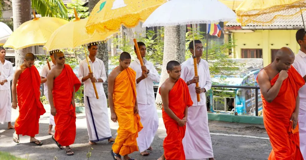 චිරාගත සම්ප්රදායට අනුව එදින අපර භාග 8.30 ට අස්ගිරිය ගෙඩිගේ රාජමහා විහාරයට ගොස් ගරුතර මහා සංඝරත්නයට ආරාධනය සිදු කරන ලද අතර, අනතුරුව කරඬුව හිස මත රැගත් බෞද්ධ ශිෂ්ය සංගමයේ සභාපති පෙරටු කොට ගනිමින් ගරුතර මහා සංඝරත්නය, හේවිසි නාදයෙන් හා නර්තනයෙන් යුක්ත ව මහත් හරසරින් විද්යාලය වෙත වැඩම කරවන ලදී. අනතුරුව දැහැත් වට්ටිය පිළිගන්වමින් ගරුතර මහා සංඝරත්නයට පරිත්රාණ සජ්ඣායනය ට නමස්කාර පූර්වක ව ආරාධනය සිදු කරන ලද අතර එම ගෞරවනීය ආරාධනයෙන් මහා සංඝරත්නය පිරිත් සජ්ඣායනය ආරම්භ කරන ලදී.