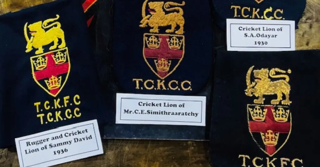 This symbolic award is presented in the form of a cloth bearing the College crest, which recipients may stitch onto their blazer. At the base of the crest are the initials of the sport for which the Lion has been awarded, for example, ‘T.C.K.F.C.’ for Trinity College Kandy Rugby Football Colours and ‘T.C.K.C.C.’ for Trinity College Kandy Cricket Colours. It was also observed that similar recognition might be extended to excellence in academic pursuits, such as achieving a First Class in the Cambridge Locals. This reflects an early understanding that achievement at Trinity should not be limited to the playing field alone.