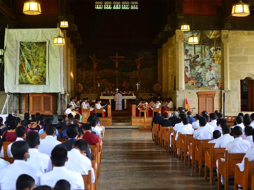 With the pealing of the Chapel bell from the John McLeod Campbell bell tower, the clerical procession led by the National Drum and Dance troupe entered the chapel, and the choir rendered the befitting processional hymn “Holy Holy, Holy! Lord God Almighty” and was followed by the bidding prayer by College Chaplain, Revd. Fr. Shelton Daniel. A Chorister and Revd Fr. Wilson Gnanadass read the Epistle reading and the Gospel respectively.